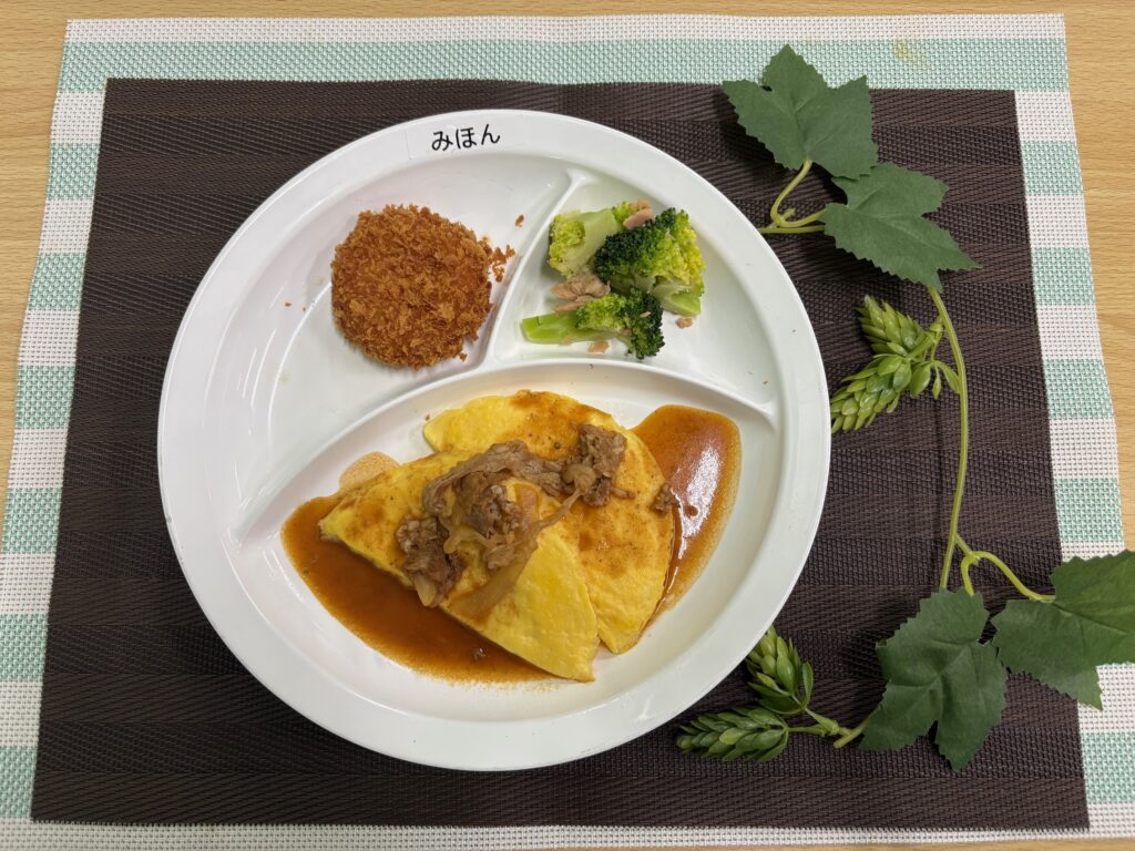 ・牛肉ときのこのハヤシ風オムレツ